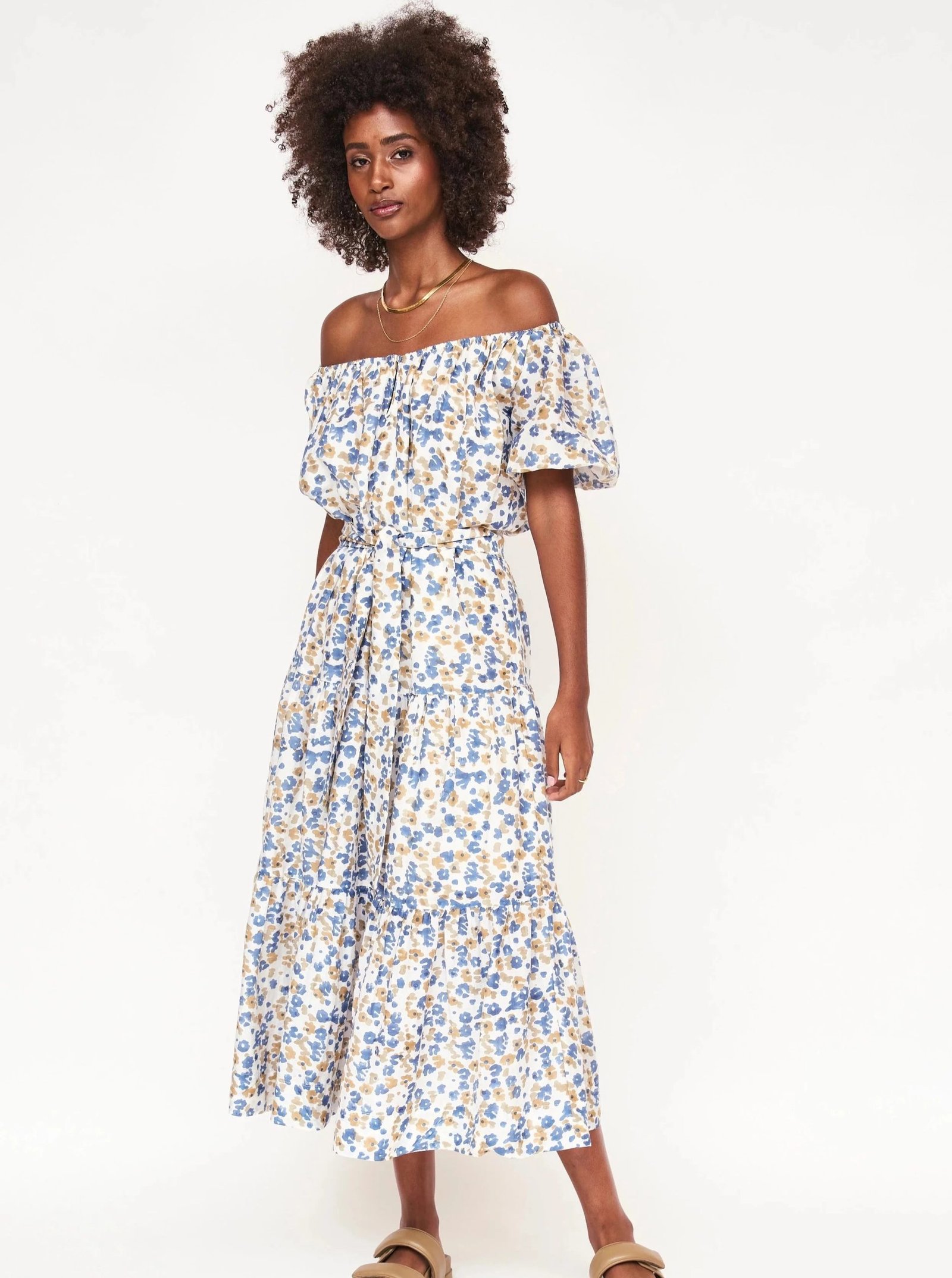 the best selling silhouette is back in a summer print. we like it off shoulder and loose, but you can always cinch the belt for a more tailored look.