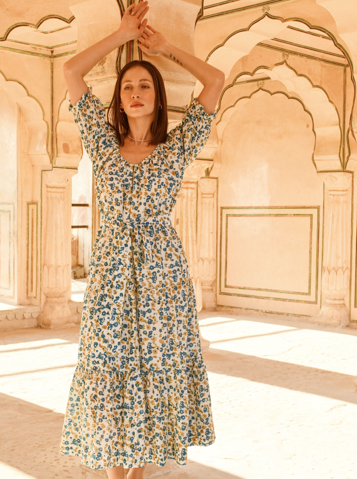 this fabric is hand block printed in small batches by a family of 4th generation printers in india.