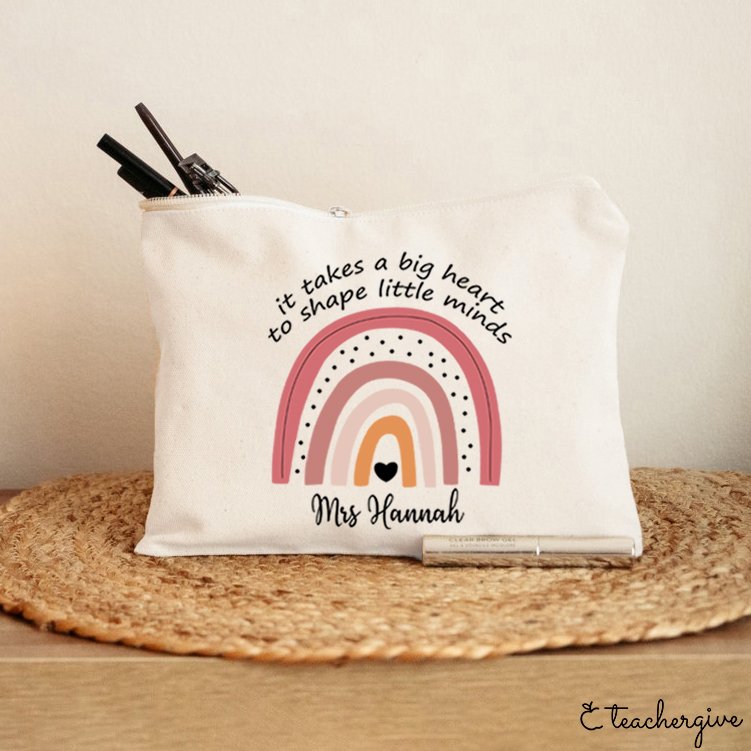Personalized It Takes A Big Heart To Shape Little Minds Teacher Makeup Bag